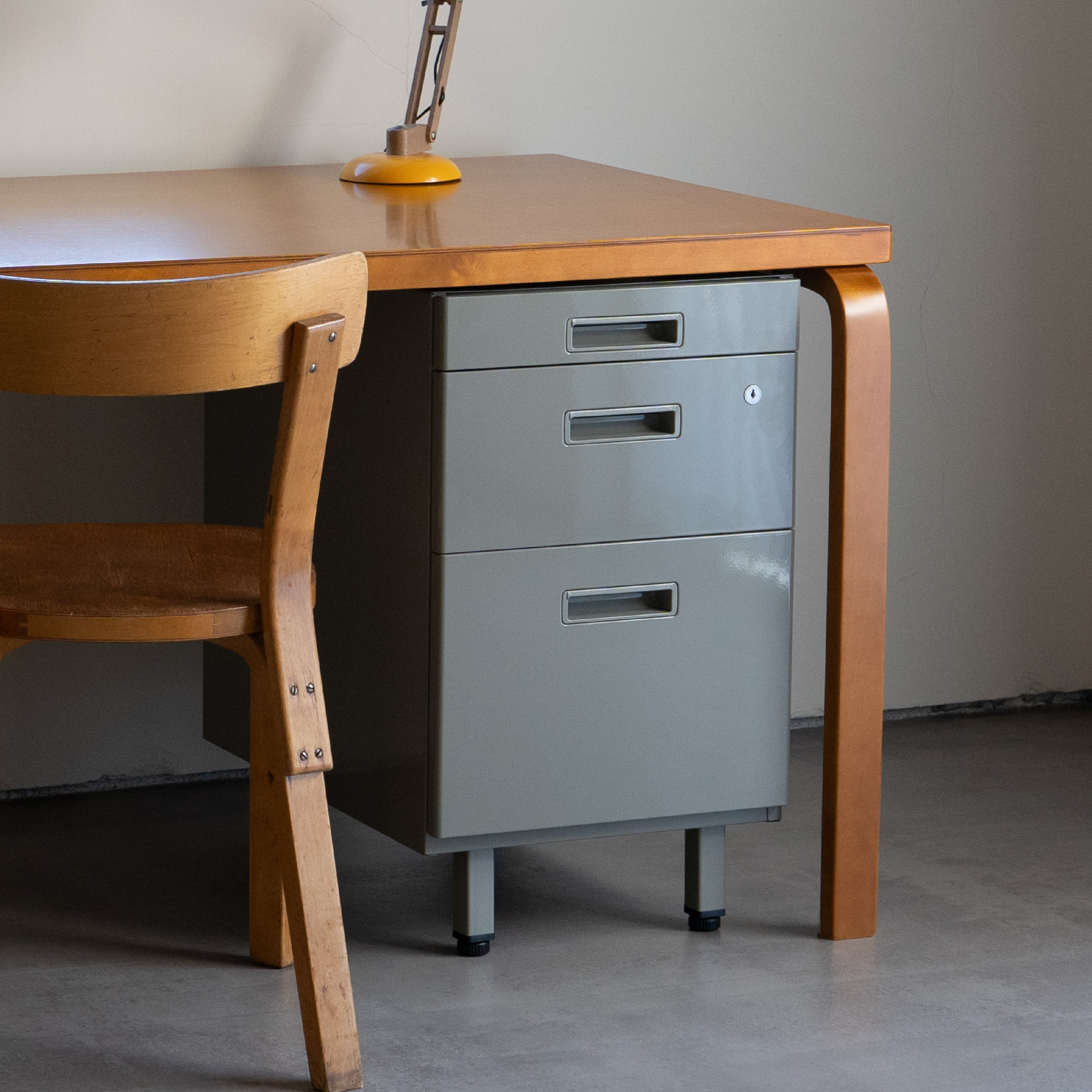 誰もが「見たことがある」と感じるキャビネット。開発から受け継がれるデザインを大切にしながらも、時代のニーズに応じて変化をしてきたオフィス家具。現代でも幅広く使用されています。